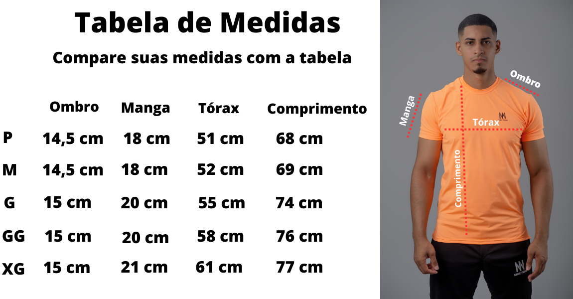 Nossa Camiseta é feita de poliamida é fresca e confortável e possui acabamento Dry Fit, que facilita a evaporação do suor, transportando-o para fora do tecido e ajudando a manter a temperatura do corpo regulada, mesmo em climas quentes.
