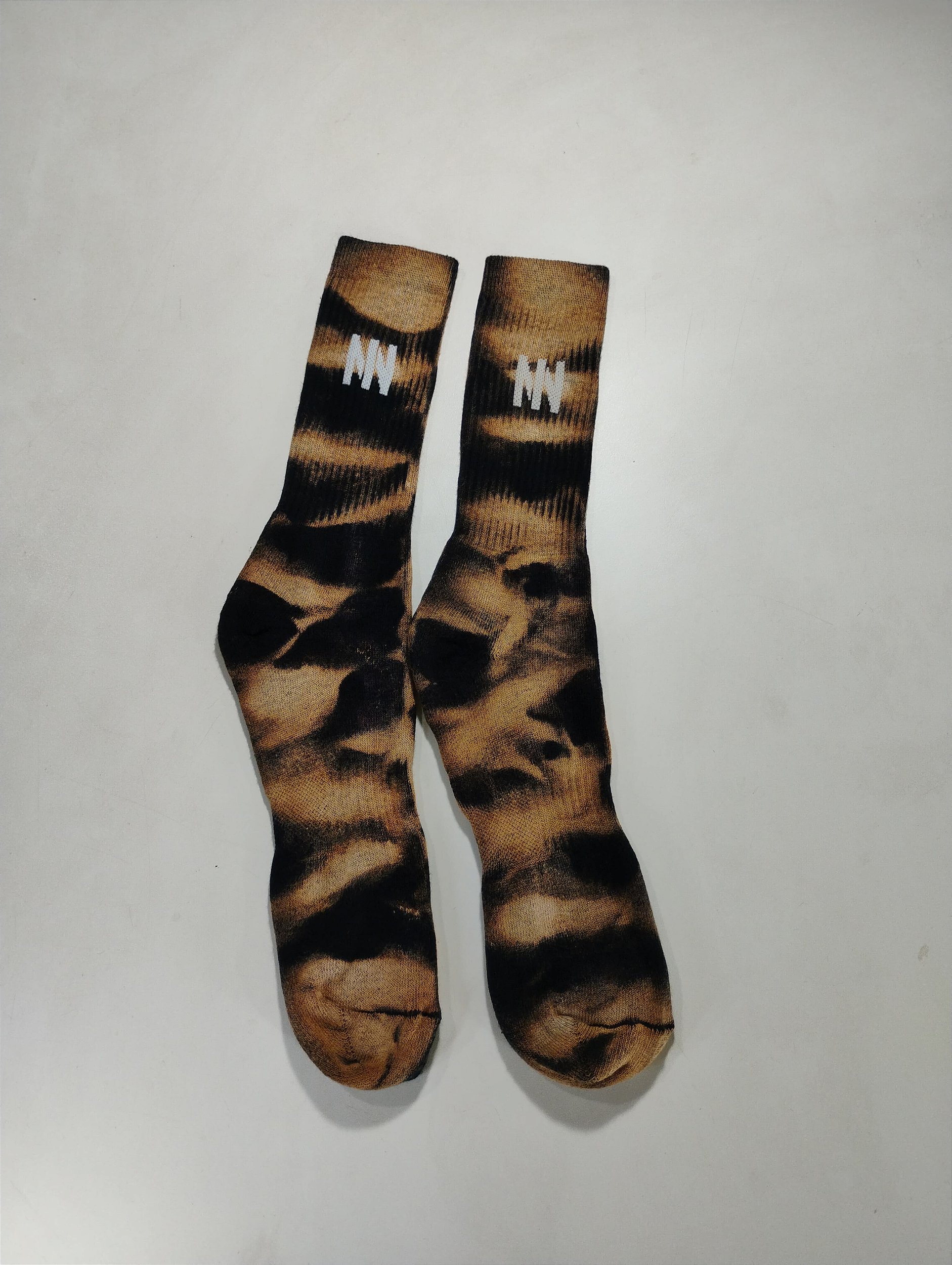 A fusão perfeita entre estilo, arte e identidade. Cada par de meias é produzido artesanalmente através da técnica de tingimento tie-dye com água sanitária, criando um visual exclusivo em tons de preto e ferrugem que nunca se repete. O logo “NN” da marca é aplicado em branco, destacando a originalidade e reforçando a autenticidade Person. Confortável, resistente e com visual urbano, essa meia é o toque final para quem veste propósito e exclusividade dos pés à cabeça.